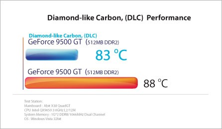 Sparkle heeft voor de toepassing van deze techniek aangeklopt bij het bedrijf Plasma Enhanced CVD, dat gespecialiseerd is in het gebruik van het zogeheten DLC. Om van de techniek over te kunnen gaan kunnen naar harde claims heeft Sparkle een test uitgevoerd met twee koelblokken, waarvan er één behandeld met een 'Diamond-like Carbon' laag. De koelblokken werden om en om op een GeForce 9500GT kaart gemonteerd, waarna de temperatuur van de videochip werd gemeten.