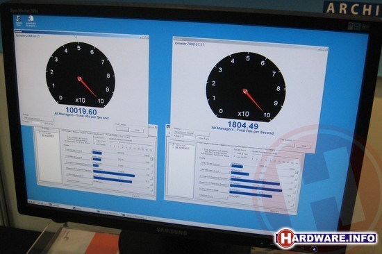 Goed nieuws voor wie een Adaptec RAID-controller uit de 5xxx-serie in z’n server(s) heeft zitten. Voor het eind van het jaar komt men met een nieuwe firmware die het mogelijk maakt om een enkele Intel SSD – men geeft aan alleen dit merk te ondersteunen – toe te voegen aan een bestaand array van ‘normale’ SATA of SAS schijven, waarna men deze SSD op een verder nog niet toegelichte wijze als buffer gaat gebruiken. De te verwachten prestatieverbeteringen zijn gigantisch: bij een demonstratie op de CeBIT stand toonde men aan dat een combinatie van vier SATA-schijven met één SSD tot ruim 5x beter presteerden in een webserver simulatie dan een combinatie van vier (snellere) SAS-schijven. Adaptec heeft toegezegd meer openheid van zaken te geven zodra de technologie eind van het jaar daadwerkelijk op de markt komt.