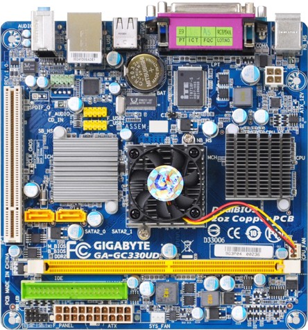 Gigabyte heeft de laatste hand gelegd aan een mini-ITX moederbord met de Atom 330 dualcore processor. Het bordje gaat door het leven als de GA-GC330UD en is voorzien van de standaard Intel Atom uitrusting. De Atom 330 processor werkt op 1,6 GHz en beschikt over 512 KB cachegeheugen per core. De zuinige dualcore wordt gekoppeld aan de oude bekende 945GC chipset, die schuilgaat onder de grootste heatsink met ventilator.