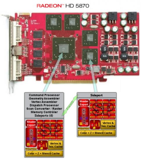 Zoals gebruikelijk voor een release van een nieuwe GPU voor een videokaart wordt er van te voren altijd heftig gespeculeerd over de specificaties en de prestaties. Eerder berichtten we al over enkele details van de Radeon HD5870 en de Radeon HD5870X2. Steeds meer 'bronnen' lijken nu onze eerder gepubliceerde details te bevestigen. De RV870 GPU-chip zal volgens het 40 nm productieproces worden vervaardigd, wat de chip efficiënter zou moeten maken. Daarnaast zal de HD5870 gaan beschikken over 1200 unified-shaders en 32 ROP's, terwijl de HD5870X2 over het dubbele aantal shaders en ROP's zal beschikken. De GPU en het geheugen van de HD5870 zal respectievelijk op 900 MHz en 1100 MHz worden geklokt, terwijl de HD5870X2 vermoedelijke klokfrequenties zal krijgen van respectievelijk 950 MHz en 1150 MHz.