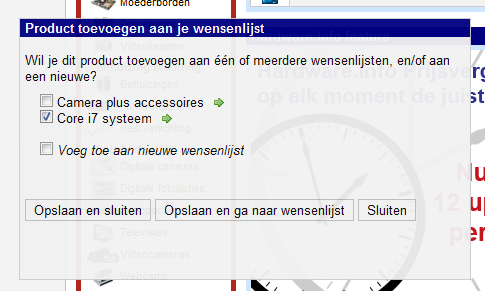 Producten toevoegen aan een wensenlijst kan op de prijsvergelijker hoofdpagina, ...