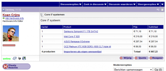 Wie via een link op het forum een wensenlijst van een ander bekijkt, ziet onderaan een link om de betreffende wensenlijst te importeren als nieuwe, eigen wensenlijst. Diezelfde link vind je vanaf nu onderaan ieder user systeem. Op die manier kun je eenvoudig een systeem bestellen dat lijkt op dat van één van de andere Hardware.Info Members.