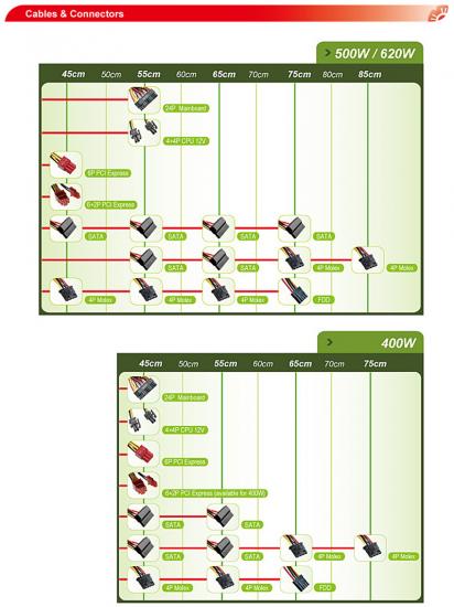 De nieuwe ECO80+ voedingen komen in een variant met 400, 500 en 620 watt en zijn allen uitgevoerd met een dubbel +12V rail, die - afhankelijk van het model - tussen de 22 en 30 ampère kan leveren.