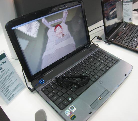 Op haar gigantische Computex stand toonde Acer een prototype laptop met een 3D-scherm. De gebruikte technologie is vergelijkbaar met de vorig jaar geïntroduceerde Zalman 3D-monitoren: de even- en oneven-beelregels zijn dankzij een speciaal filter anders gepolariseerd en door gebruik te maken van een speciale bril zie je games of video écht 3D. Het voordeel van de gebruikte technologie is dat er bijna geen concessies worden gedaan op het gebied van helderheid of kleurweergave. Wel is het zo dat in 3D-modus de verticale resolutie van het scherm in feite halveert en dat de kijkhoek van het scherm op z'n zachtst gezegd niet bijster groot is.