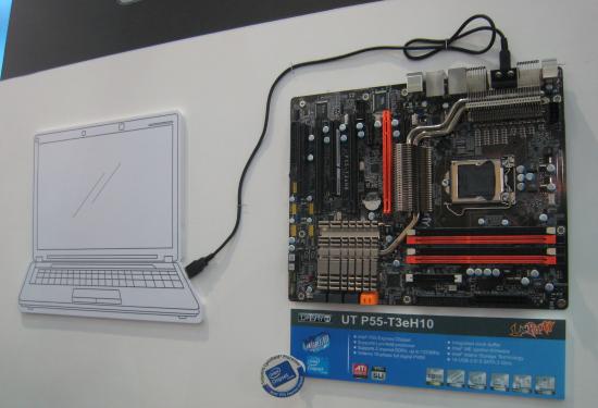 DFI gaat een interessante nieuwe feature aanbieden op haar topmodel P55-moederbord, de LanParty UT P55-T3eH10. De BIOS van dit moederbord kun je via een USB-kabel flashen vanaf een andere PC of notebook. Om dit te doen moet je puur het moederbord via een standaard USB-kabel aansluiten. Het is niet nodig om enige componenten zoals processors of geheugen op het bord te plaatsen en ook hoeft het moederbord niet van stroom te worden voorzien. Wanneer je na een mislukte normale flashpoging of om welke andere reden dan ook je BIOS om zeep geholpen hebben, dan kun je via deze nieuwe technologie je moederbord altijd weer op de been helpen.