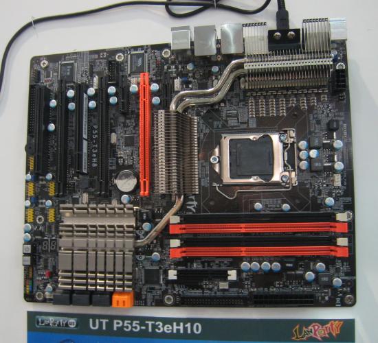 Een andere opvallende feature is DFI's topmodel P55-moederbord is de 10-fase digitale PWM voeding. De fabrikant geeft aan dat de kleuren van het getoonde bord nog niet definitief zijn.