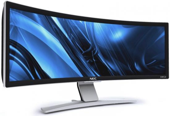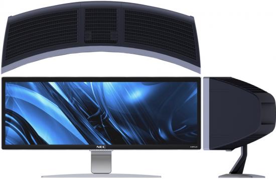 Wie de 21:9 Cinemascope TV van Philips al breed vond kan z'n ogen uitkijken bij NEC's nieuwste creatie op het gebied van monitoren. Het bedrijf presenteert haar 43-inch CRV43 ultra-widescreen monitor, die met een beeldverhouding van 32:10 tweemaal zo breed is als een reguliere widescreen monitor. Het scherm is bovendien voorzien van een kromming, die de monitor een diepte van ruim 38 cm geeft, en die de kijker een ongekende visuele ervaring moet bieden.
