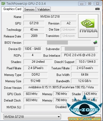 VR-Zone heeft een GPU-Z screenshot weten te bemachtigen van zowel de GT218 als de GT216 videokaart, die uiteindelijk als de GeForce G210 en GT220 op de markt zullen verschijnen. De G210 zal beschikken over 24 shaderunits, een 64-bits geheugenbus en 512MB aan DDR2 of GDDR3 geheugen. Deze lowbudget kaart zal voor ongeveer $30 tot $35 van eigenaar moeten wisselen en moet de GeForce 9400 gaan opvolgen.