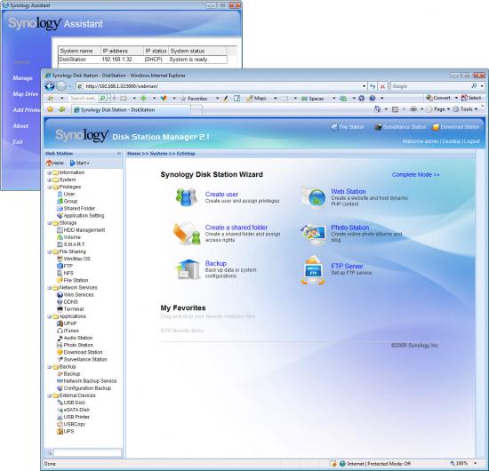 Verder heeft de Disk Station Manager 2.1 software in de DS409slim ondersteuning voor Windows ADS integratie, cross platform data sharing, RAID data protectie en een aantal backup mogelijkheden. Daarnaast kan men gebruik maken van 24x7 BitTorrent, FTP, HTTP, eMule en andere multimedia applicaties zoals Internet Radio en iPod playback. Voor bezitters van een mediaspeler is er ook ondersteuning voor UPnP (DMA). Naar alle verwachting zal de Disk Station Manager 2.2 software deze maand als bèta beschikbaar worden, waarmee mogelijk extra functies worden toegevoegd.