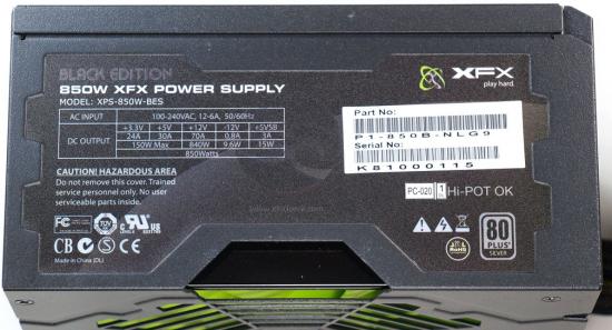XFX' 850W Black Edition combineert verder een 80Plus Silver certificaat, dat een efficiëntie van tenminste 88% bij halve belasting garandeert, met een hybride ontwerp. Dit laatste uit zich in zowel afneembare kabels als niet-afneembare bekabeling. Aanwezig is een enkele 12 volt lijn, die goed is voor maximaal 70 Ampères, het equivalent van 840 watt. Voor een stabiele werking is gebruik gemaakt van kwalitatief hoogstaande solid condensators van Japanse makelij, aldus XFX. Een stille 135 mm ball bearing ventilator voorziet in de nodige koeling van het geheel.