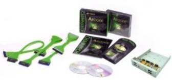 Net als de andere Apogee borden is ook de 9EL2 uitermate complete uitgerust, zo wordt het bord in een mooie doos geleverd met daarin ondermeer ronde Floppy en IDE-kabels. Om het pakket helemaal compleet te maken is er ook nog een speciale hoofdtelefoon en een zogenaamde CBOX bracket meegeleverd waarmee je de belangrijkste aansluitingen van het moederbord ook aan de voorzijde beschikbaar kunt stellen.