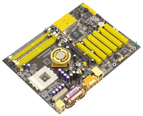 De 9EJS1 is het 845PE moederbord en beschikt over 2x DDR333, paralle Ultra 133 RAID (2x), 2x Ultra 100 IDE, 3x FireWire (IEEE1394), LAN, 6-kanaals audio met SPDIF.