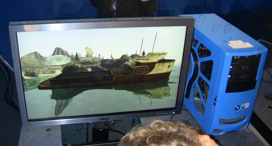 Demosysteem met 6-core Gulftown processor en Larrabee videokaart.
