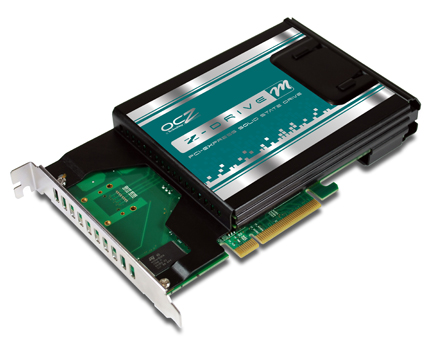OCZ lanceerde vorige maand al een nieuwe versie van de Z-Drive, een PCI-Express controller met een aantal ingebouwde Solid State Drives. Deze maand komt het bedrijf met de Z-Drive M84 bedoelt voor het midden- en high-end segment met verbeterde prestaties tegen een relatief lagere prijs. De SSD heeft afmetingen van 195 mm bij 32 mm bij 127 mm (L*H*B) en weegt ongeveer 500 gram. De SSD met PCI-E interface maakt gebruik van MLC NAND flashchips gecombineerd in een RAID 0 configuratie. Hierdoor kunnen maximale lees- en schrijfsnelheden van respectievelijk 870 MB/s en 780 MB/s worden gehaald. Om van deze snelheid volledig gebruik te maken maakt de Z-Drive gebruik van een PCI-Express x8 interface en beschikt de drive over 256MB cachegeheugen. De schijf wordt ondersteund met drivers in Windows XP, Vista en Windows 7 en heeft een MTBF van een miljoen uur.