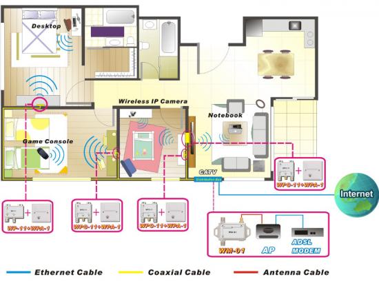 Dit alles zou moeten resulteren in makkelijk aan te leggen verbinding met de voordelen van een goed bereik door het hele huis, op voorwaarde natuurlijk dat er in de meeste kamers een coax aansluiting voorhanden is. De techniek is niet alleen geschikt voor gebruik in huis, maar ook in bijvoorbeeld hotels waar alle kamers in principe al over een coax aansluiting beschikken.