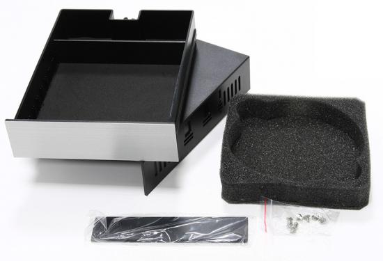 Het bakje weegt 275 gram en komt met diverse extra's waaronder een speciaal stuk foam waarin DVD's passen en drie tussenplaten om het bakje op te delen.