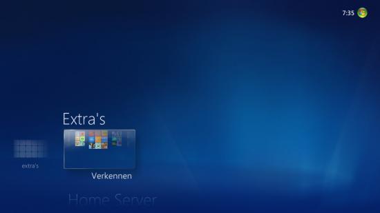 De online content vind je in Windows 7 Media Center onder Extra's en dan Verkennen.