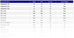 Een compleet overzicht van alle HDTV kanalen bij kabelaars Ziggo, UPC en Caiway en satellietoperator Canal Digitaal is hier te vinden.