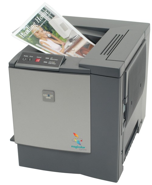 Met de Magicolor 2300W introduceert Minolta-QMS, een betaalbare kleurenlaser. Minolta-QMS spreekt zelf over de eerste personal kleurenlaserprinter. De printer is slechts (492 x 360 mm) groot.