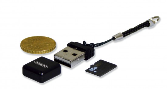 Eminent komt met de ultra compacte EM1061 kaartlezer. Dit lezertje, waarin geheugenkaarten uit een mobiele telefoon of PDA passen, is niet groter dan een muntstuk van 10 Eurocent. De kaartlezer steekt derhalve slechts 10 millimeter uit de USB-poort van een PC of laptop. Dankzij het kleine, lichte ontwerp is deze kaartlezer eenvoudig mee te nemen aan een sleutelbos of in een portemonnee.
