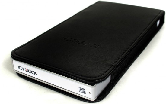Icy Dock levert een lederen hoesje mee waarin de behuizing meegenomen kan worden zonder krassen en beschadigingen op te lopen. Optioneel kan men tevens kiezen voor een bijpassend dockingstation dat geplaatst kan worden in een 3,5-inch bay.