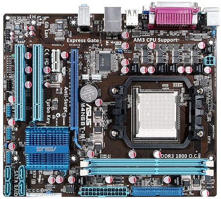 De twee AM3 moederborden zijn gebaseerd rond nVidia's GeForce 7025 chipset. Waar de M4N68T komt met viermaal DDR3, moet zijn Micro-ATX broertje het stellen met twee van zulke slots. Wederom zijn het de video-uitgangen die verder het grootste verschil maken: geen op de 'gewone', alleen D-sub op de ander.
