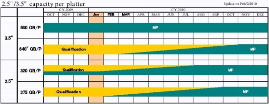 De eerste 375 GB platters rollen op het moment van schrijven van de band, waardoor de verwachting is dat het eerste model deze maand nog aangekondigd zal worden. Per oktober zullen alle partners van TDK de overstap op de nieuwe platters gemaakt hebben. Ook wordt momenteel de laatste hand gelegd aan het testen van de 3,5-inch 640 GB platters. De productie ervan zal volgende maand beginnen, waarna ze in november breed toegepast zullen worden.