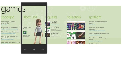 Spelletjes zullen via Xbox Live gespeeld kunnen worden en de topscores zullen ook in gedeelde leaderboards verschijnen. Ook muziek- en videocontent kan gedeeld worden via Zune Social. Onder het kopje People kun je al je sociale netwerken bezoeken. Hoe Microsoft de distributie van en toegang tot kleine programmaatjes, beter bekend als apps, zal gaan verwezenlijken is vooralsnog niet bekendgemaakt. Verwacht wordt dat het systeem met hubs hier uitkomst zal bieden.
