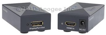 Tot op heden was het niet mogelijk om apparatuur voorzien van een HDMI-uitgang aan te sluiten op een beeldscherm met (mini-)DisplayPort aansluiting, een type connector dat met name door Apple gebruikt wordt bij een aantal van haar schermen en all-in-ones. Deze leemte wordt nu echter opgevuld door Kanex en Apogee, die beide een actieve adapter om HDMI-signalen om te zetten naar DisplayPort in het assortiment opgenomen hebben.