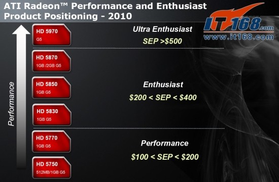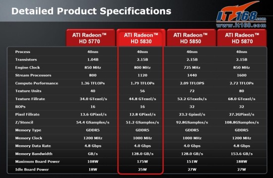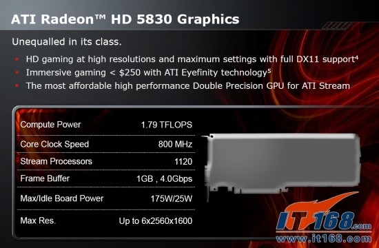 Op de Aziatische website IT168.com zijn slides geplaatst van een AMD presentatie over de Radeon HD5830, een nieuwe videokaart die het gat tussen de snellere HD5850 en de langzamere HD5770 modellen moet opvullen. Eerder dook er al een pre-order prijs op van deze nieuwe videokaart, maar nu is er ook eindelijk duidelijkheid geschapen over de exacte specificaties van dit nieuwe model.