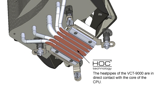 De VCT-9000 koeler is geschikt voor de sockets LGA775/1156/1366 van Intel en de sockets AM2/AM3 van AMD. Vanaf volgende week is dit nieuwe model verkrijgbaar voor prijzen van ongeveer 50 euro. De koeler komt met drie jaar garantie.