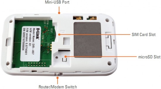 De DIR-457 is uitgerust met een geïntegreerde 3G-modem en beschikt over een 6-pin SIM-kaart sleuf die volgens opgave geschikt is voor kaartjes van elke telecommaatschappij. Een schakelaar maakt het bovendien mogelijk het apparaatje in te zetten als WiFi-router met 802.11g snelheden. Het aantal ondersteunde clients is daarbij beperkt tot zestien. Ook is een Mini-USB poort aanwezig waarmee de ingebouwde accu opgeladen kan worden en een aangesloten systeem meteen van een internetverbinding voorzien wordt. Tot slot ontbreekt ook een MicroSD slot niet, waarmee een passende flashgeheugenkaart ingezet kan worden als gedeelde opslagruimte.