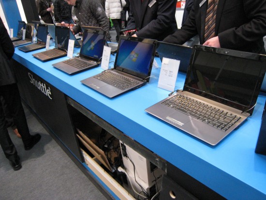 Shuttle ken je waarschijnlijk wel van de barebones. Vorig jaar is men echter begonnen met de verkoop van notebooks en daar was op de CeBIT het bewijs van te zien. Een aantal modellen stonden op de stand opgesteld. Op het eerste oog lijken de machines weinig opvallend. Zo is het getoonde model voorzien van het inmiddels al weer wat verouderde Intel zuinige Intel Celeron, Pentium en Core 2 Duo processors uit de SU-serie. Toch is het zeker interessant dat Shuttle deze move maakt, want dat maakt het aantal merken waar je zelf invloed uit kunt oefenen op de configuratie groter.