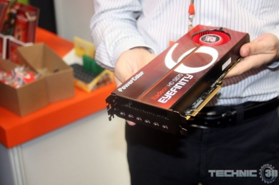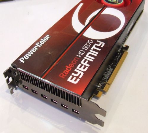 Tijdens CeBIT werd de kaart al getoond door PowerColor, samen met een HD 5770 model dat Eyefinity met vijf schermen ondersteunt. Van deze twee heeft de HD 5870 betere componenten aan boord: net als een standaard HD 5870 is de kaart gebaseerd op de Cypress XT GPU met 1600 stream processors. Terwijl veel 5870 modellen over 1 GB GDDR5-geheugen beschikken, is de Eyefinity 6 uitvoering voorzien van 2 GB. De core en shaders zijn geklokt op 850 MHz en het geheugen draait op een frequentie van 4x1200 MHz.