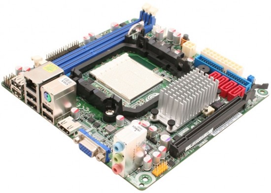 Wat Jetway niet is gelukt, doet Sapphire met de IPC-AM3DD785G: op dit mini-ITX bord is socket AM3 gecombineerd met twee standaard DDR3-sloten. Het moederbord van 170 bij 170 mm heeft bovendien een PCIe x16 uitbreidingsslot, zodat het mogelijk is een losse videokaart te gebruiken.