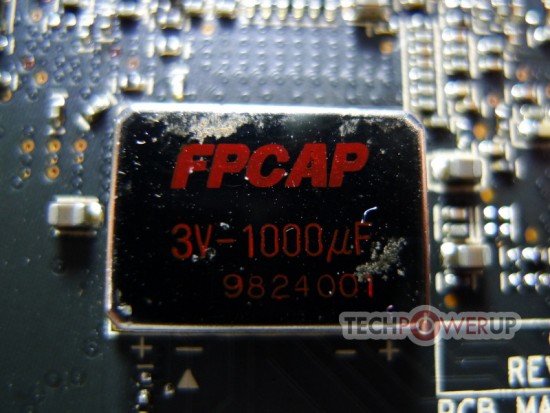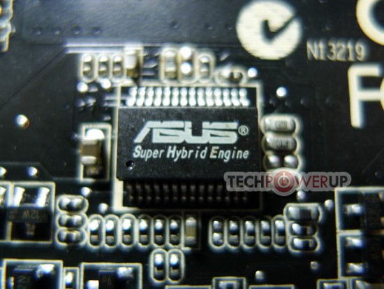 Naast de sterkere VRM heeft ASUS ook een extra Fujitsu 1000 µF condensator op de kaart gesoldeerd, die moet zorgen voor een stabielere stroomvoorziening voor de GPU. Een additionele controller die een aantal parameters in de gaten kan houden is eveneens toegevoegd. Zo kunnen verschillende spanningen, de klokfrequenties, de ventilatorsnelheid en de GPU belasting in het oog gehouden worden. De spanning kan ook softwarematig en zelfs manueel met een multimeter afgelezen worden via directe meetpunten op het PCB.