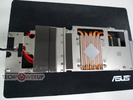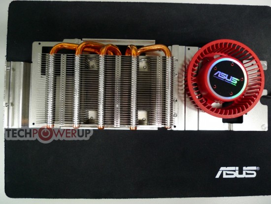 Koeling van de Matrix gebeurt door vijf koperen heatpipes die in direct contact staan met de GPU core. Op die manier moet de geproduceerde warmte snel naar de aluminium koelvinnen geleid worden. De ventilator van ASUS is dikker dan AMD's referentiekoeler en zou naar verluidt ruim 20% meer lucht moeten kunnen verzetten. Naar alle waarschijnlijkheid zal de ROG Matrix HD 5870 binnenkort in de schappen te vinden zijn voor een nog onbekende adviesprijs.