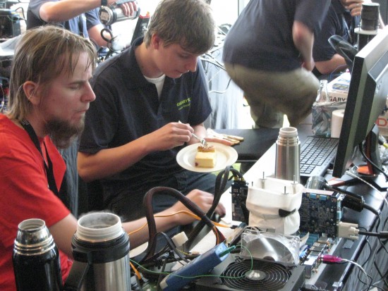 De Zweden melden dat ze een SuperPi score hebben.. het wordt spannend. Over enkele ogenblikken komt de score van de Belgen op het bord.