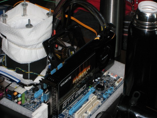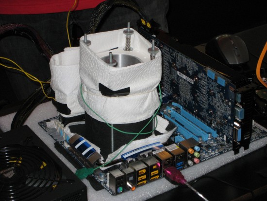 Het laatste uur van de competitie heeft bijna geslagen. Net even met Massman gesproken en om het met zijn woorden te zeggen: "De cpu is niet zo straf als we gedacht hadden. We hebben een beetje pech met de benchmark, want hoewel we -196 graden halen, blijft hij steken op een SuperPi van 6,1".