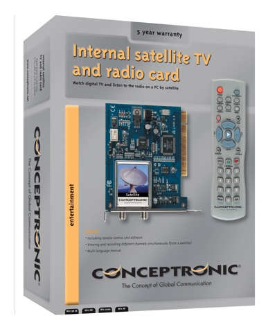 Conceptronic lanceert de Satelliet TV & Radio kaart (CTVSATi). Met deze kaart verander je pc in een handomdraai in een TV of radio. De adviesprijs van dit apparaat is € 115,-