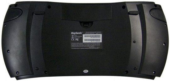 KeySonics nieuwste creatie heeft afmetingen van 388 x 42 x 185 mm en weegt exclusief vier AA-batterijen ongeveer 726 gram. Boven de functietoetsen bevinden zich twaalf multimediaknoppen, terwijl we links naast de standaardtoetsen het scrollwiel en de twee muisknoppen terugvinden. De rechterkant wordt gesierd door de optische trackball met een diameter van 19 mm. Alle toetsen zijn dankzij de SoftTouch membraantechnologie voorzien van een stille en zachte aanslag.