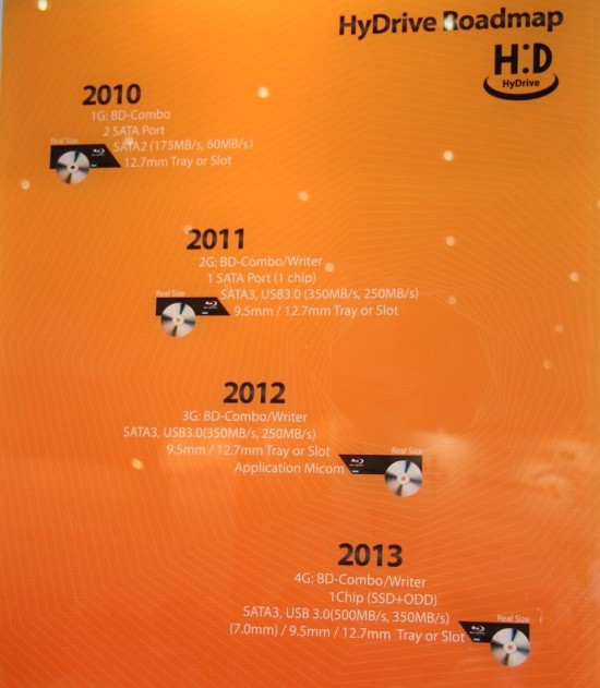 Zoals beloofd heeft LG-Hitachi tijdens Computex meer details bekend gemaakt met betrekking haar HyDrive, een combinatie van een optische drive en solid-state drive. Middels een roadmap werd de huidige stand van zaken toegelicht, alsmede een blik geworpen op de ontwikkelingen die nog moeten gaan komen.
