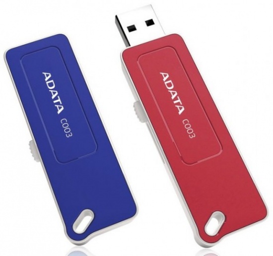 A-Data lanceert een nieuwe serie van USB-flashdrives met de C003 serie. De nieuwste toevoegingen van A-Data aan haar assortiment wegen 10 gram en hebben afmetingen van 63 mm bij 21 mm bij 8 mm (LxBxH). De sticks maken gebruik van een USB 2.0 connector die kan worden ingeschoven in de behuizing. Hiermee wordt het gebruik van een dopje voorkomen die zoek kan raken en blijft de stick ook compact.
