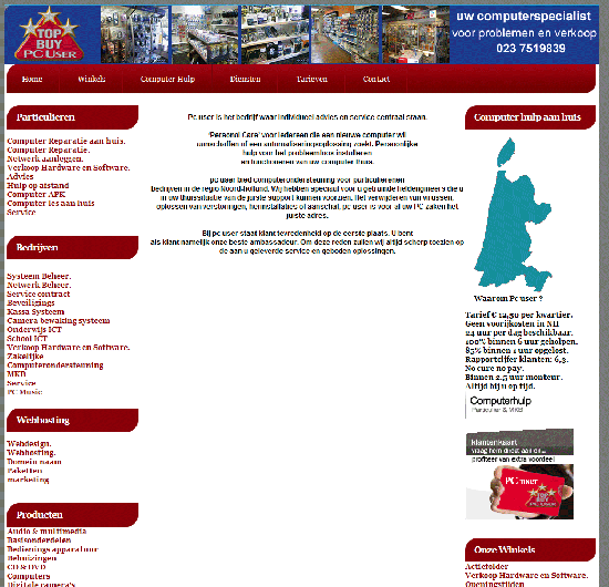 De website van de webwinkel pc-user was na het faillissement nog gewoon bereikbaar. Afbeelding afkomstig van ICTWaarborg.