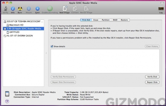 Op deze screenshot van Gizmodo is te zien dat de Mac Mini een SDXC-kaartlezer heeft