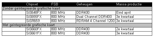 Nadat vandaag bekend werd dat SiS haar contract met Intel verlengd heeft, gaf het Taiwanese bedrijf vandaag ook een roadmap met chipsets die geschikt zijn voor de nieuwe 800 MHz P4 FSB vrij.