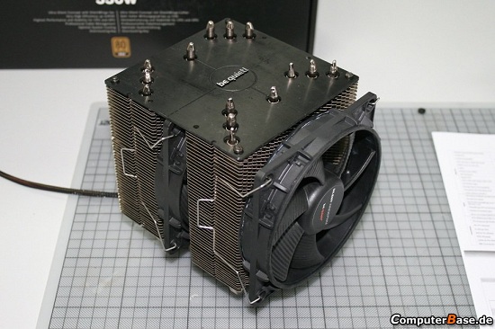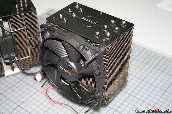 Daarnaast is er de Dark Rock Pro, die nog betere prestaties moet leveren en die daardoor ook weer een stuk groter is. Dit model koeler heeft twee gescheiden koelblokken met daartussen een tweede ventilator, hetzelfde concept dat Noctua heeft toegepast op haar NH-D14 koeler. Dit model gebruikt ook de SilentWings 120mm PWM ventilatoren en zal daarbij een geluidsproductie van minimaal 12 en maximaal 25 dB(A) geven. Deze koeler moet ook per ingang van december verkrijgbaar zijn, maar de prijs van dit model is vastgesteld op 79,90 euro. Voor dat bedrag zijn ook al instap waterkoelsetjes te koop die ook al zeer goede prestaties leveren.