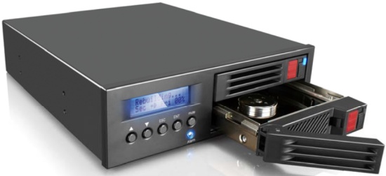 Specialist in opslagbehuizingen Raidon heeft een nieuwe 5,25-inch inbouwmodule uitgebracht om twee 2,5-inch harde schijven in RAID te configureren. De MR2020, zoals het apparaat gedoopt is, kan schijven met een hoogte van 15 mm herbergen en komt met een geïntegreerd schermpje waarop de status van het geheel af te lezen is.