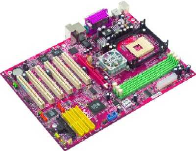 Het bord is voorzien van 3 DIMM-slots, goed voor 3 GB DDR400-geheugen, 1 AGP 8X-poort, 10/100 Mbps LAN-controler, 5.1 geluid en 6 PCI-slots.