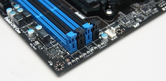 Het 990FXA-GD80 bord van MSI heeft de bekende blauw-zwart kleurencombinatie en is uitgerust met vrijwel alle features die je op een high-end moederbord zou verwachten. Zo is het bord uitgerust met de zogeheten 'Military Class II' componenten (Hi-c CAP en solid-cap condensatoren en spoelen met ferrietkern), een 10-fase stroomvoorziening voor de processor, vier PCI-Express x16 slots en vier DDR3-2133 geheugensloten. De vier videokaartsloten delen samen de 32 PCI-Express lanes van de chipset en bieden ondersteuning voor zowel SLI (met maximaal drie kaarten) als CrossFireX (maximaal vier GPU's). Daarnaast zijn er nog twee kleine PCI-Express x1 slots en een regulier PCI slot aanwezig.
